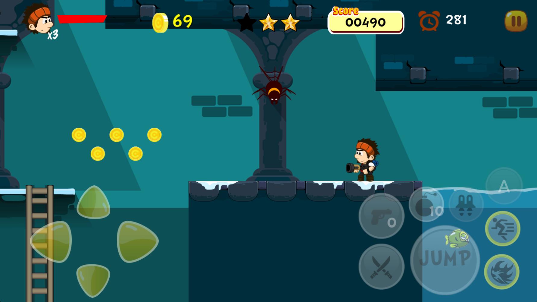 4、拾取金币和击败怪物可以获得分数,每个关卡都有三个星星等你去寻找,找齐三个星星就可以三星通关。