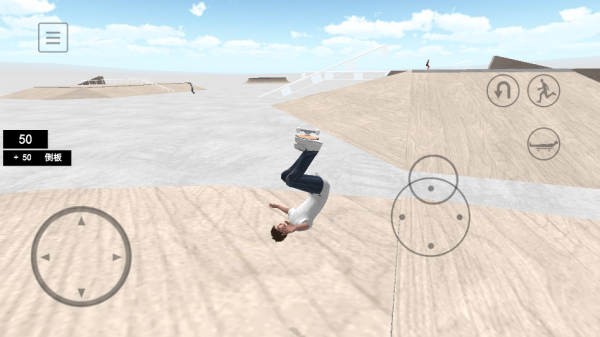 2、物理引擎模拟了滑板运动的特性,如加速惯性、重力影响、起跳力度、板头板尾的平衡、与道具摩擦的反馈等。