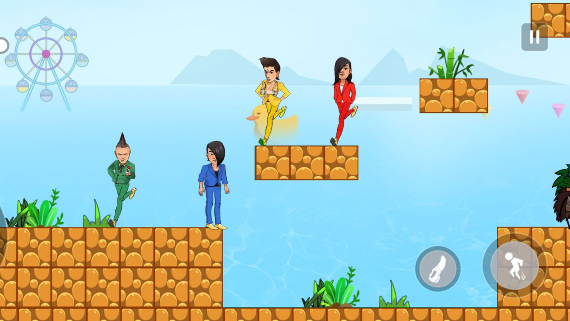 4.使用左侧的摇杆控制角色前进,右侧用于攻击和跳跃。灵活跳跃前进,克服各种障碍才能成功抵达终点!