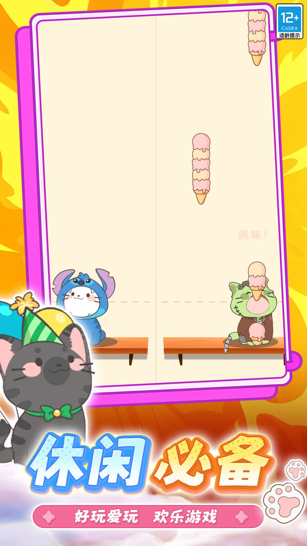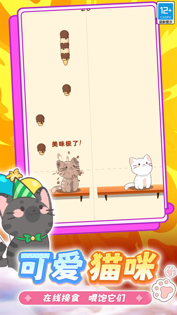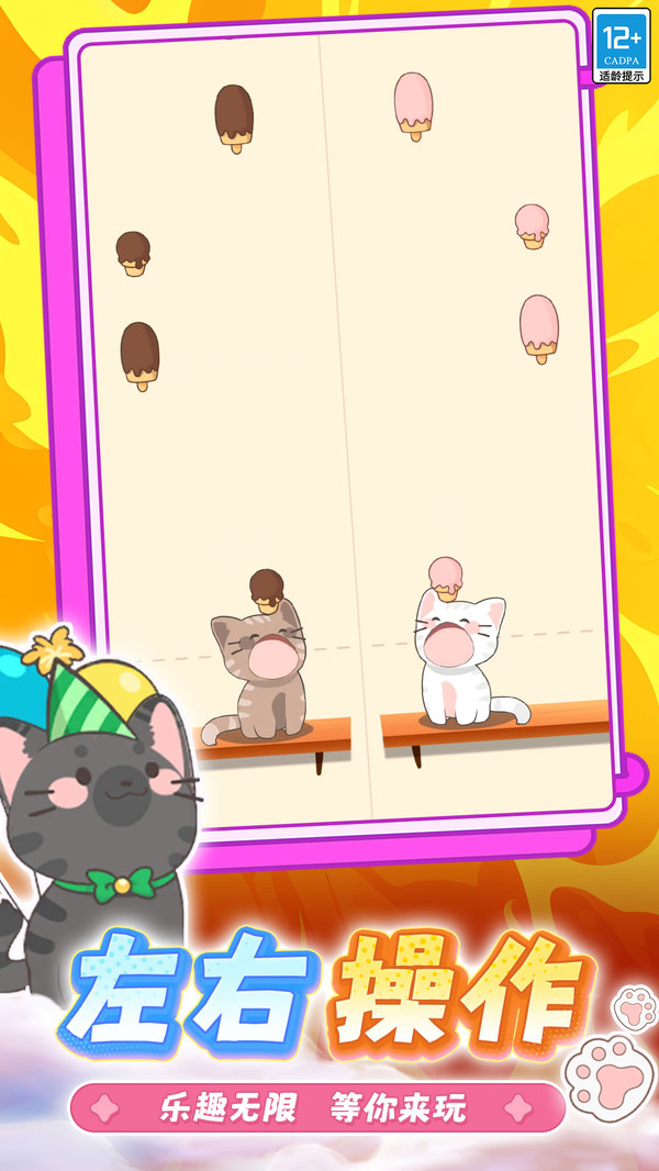 节奏达人音乐节是一款主打欢乐氛围的音乐节奏游戏。在梦幻感十足的甜点主题舞台上,玩家将与伙伴一同化身成两只节奏感爆棚的萌趣猫咪,跟着动感十足的节拍,灵活操控它们精准接住从天而降的各色缤纷甜点。这不仅是一场视听双重享受的盛宴,更极度考验你和伙伴之间的默契度与反应速度——千万不要让任何一份美味甜点掉落!