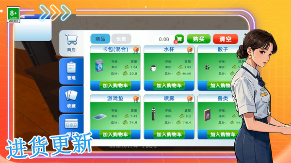 模拟经营元素:玩家需要管理自己的卡牌超市,包括进货、定价和促销活动。