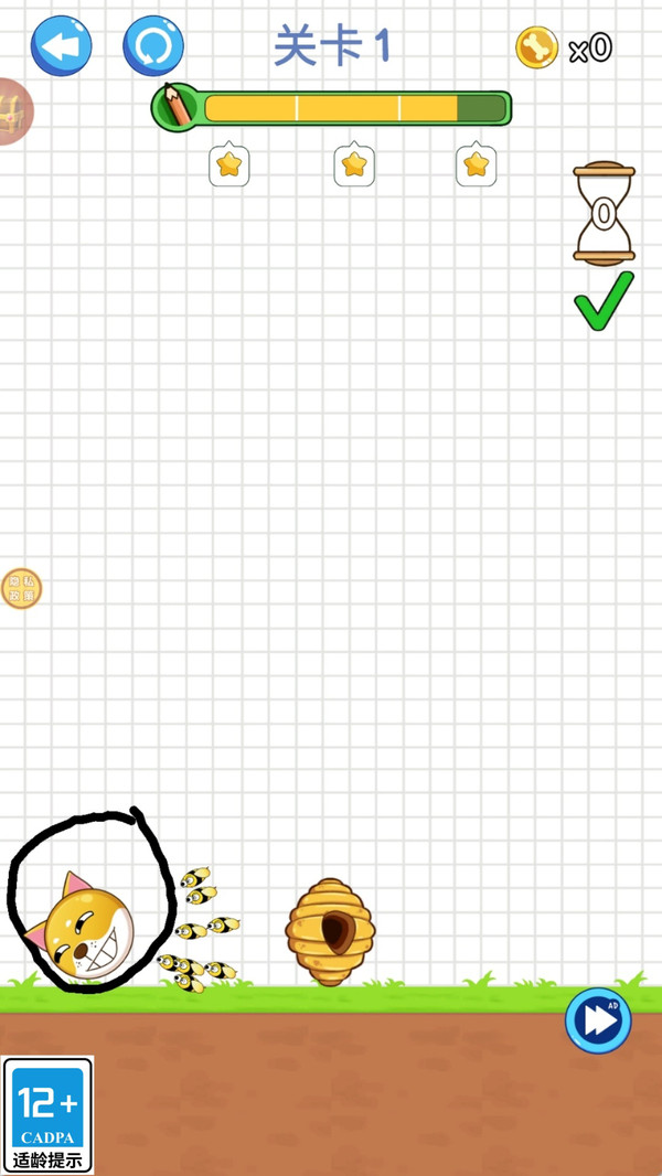 1. 创意玩法:玩家需要通过画线的方式,巧妙地构建保护狗狗的防线,既要防止蜜蜂的攻击,又要避免狗狗跌入岩浆等危险区域。