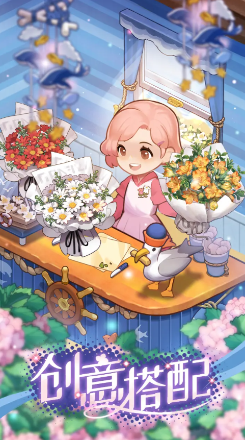推开吱呀作响的店门,奶奶留下的旧花架与花札手账静静等候。你可以挑选新鲜花卉,在原木操作台完成「插花摆台」—— 搭配尤加利叶与小雏菊做清新桌花,或是用玫瑰与满天星打造浪漫花束,摆上临街橱窗就能吸引路过居民驻足购买。身边的小鸭子总安静陪伴:你整理花材时它蹲在操作台旁,你搬运花盆时它轻轻跟在身后,暖融融的存在感让人安心。
