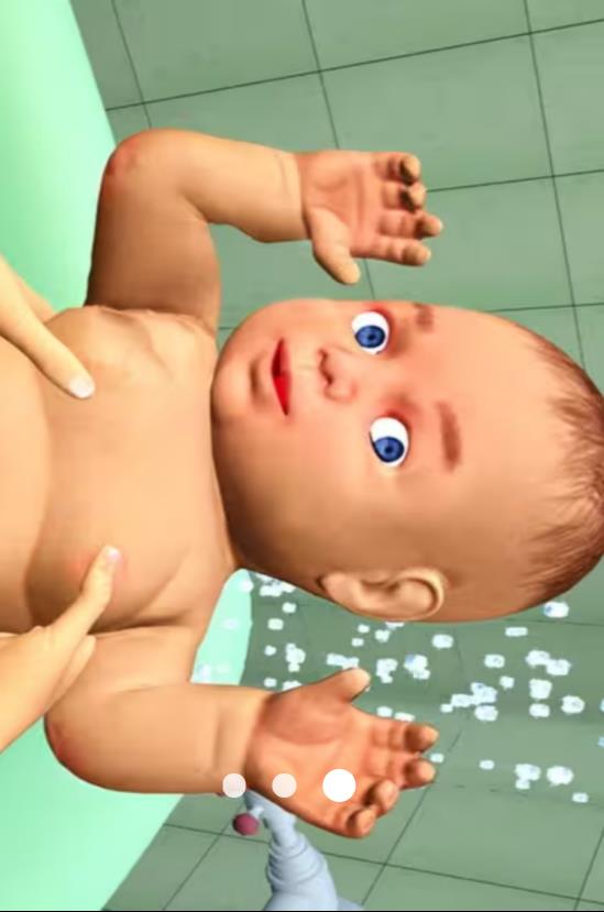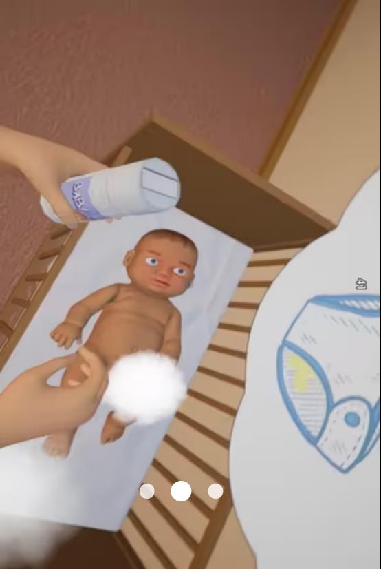 2、用虚拟摇杆操控角色在房间内探索,熟悉宝宝活动范围与各类育儿道具的摆放位置。