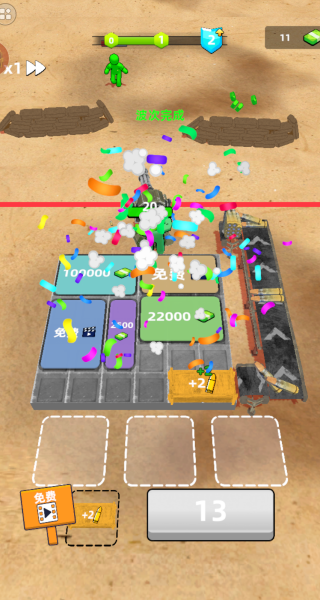 2、将弹药箱放置在指定区域,其会自动无限生产子弹,可点击屏幕加速子弹产出效率,提升初期防御能力。