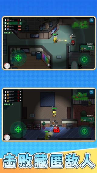 3、体验多种游戏模式,在生存模式中挑战极限存活时间,在大乱斗中通过击杀积累得分,感受多样乐趣。