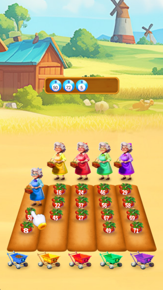 1、核心玩法是简单直观的数字点击消除。菜园中遍布带有数字的番茄,点击两个或以上相邻的相同数字,即可将其消除。