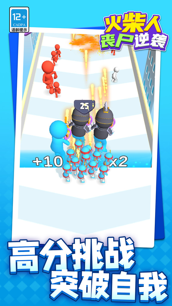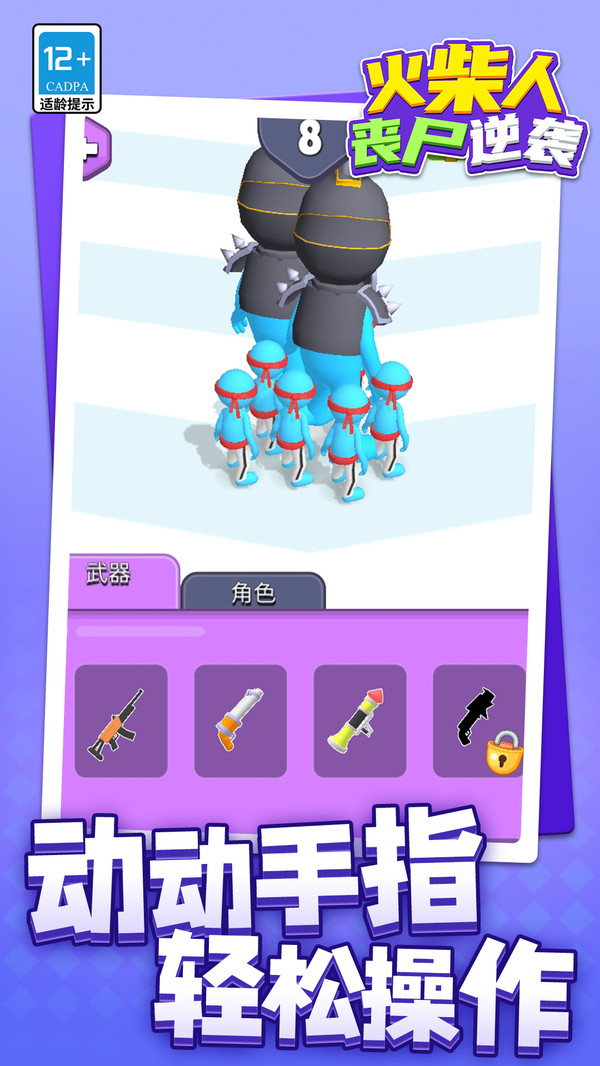 角色成长系统助力闯关,升级生命值、移速、射击伤害等属性,逐步强化火柴人战力,应对后期更强敌人。