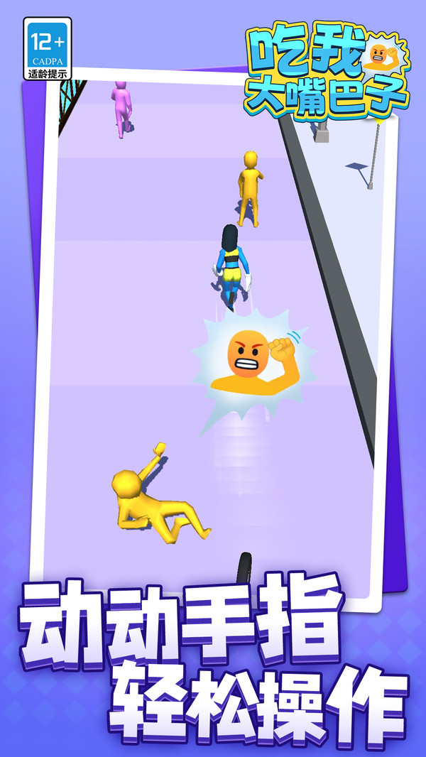 ?吃我大嘴巴子是一款充满恶搞创意的跑酷游戏。在游戏中,为了能尽情奔跑,你会给所有挡路的人一个出其不意的礼物。通常情况下,路人会在你身后陪着你一起奔跑、加速奔跑,所以你要小心,不要被他们追上哦!在游戏里,你扮演的是一位巴掌侠,在一条挤满路人的街道上奋力向前奔跑!任何挡在你面前的家伙,都将毫无例外地收到你最热情的问候——一记清脆响亮的大嘴巴子!