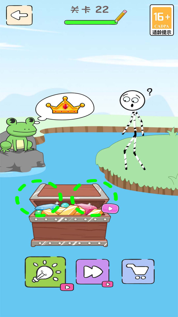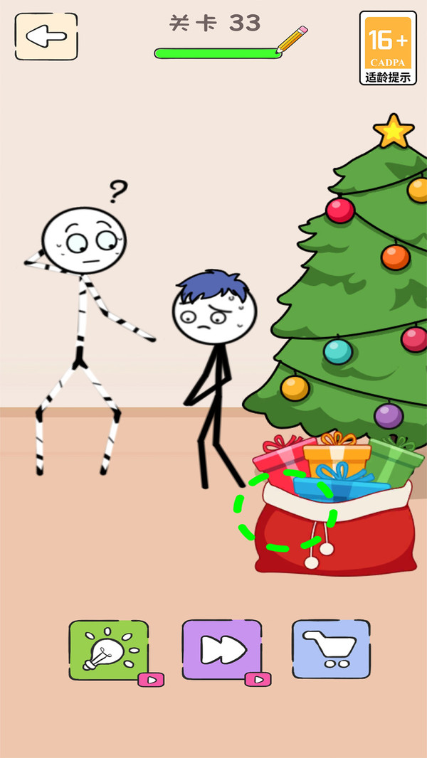 2、关卡1需要你利用画笔画线去获取拖鞋,完成起来很简单。