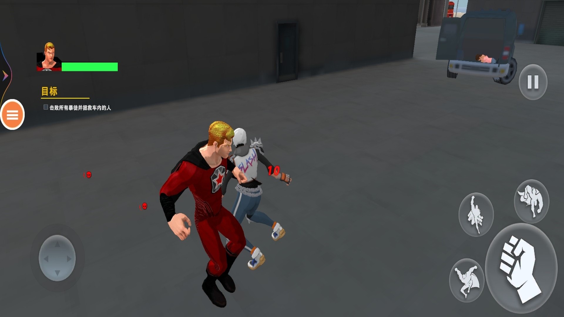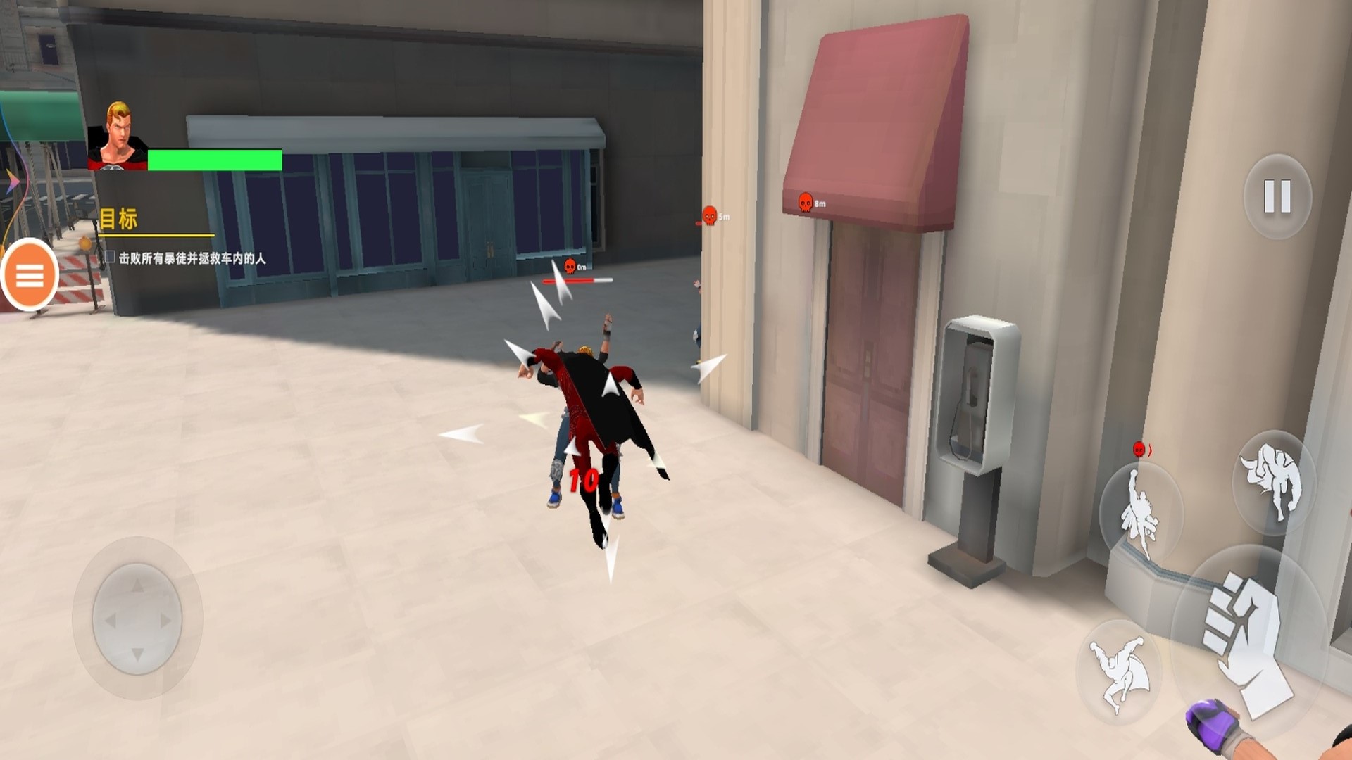 3.核心目标是通过战斗与救援行动,平衡城市危机,逐步解锁更多区域与剧情,成为市民信赖的英雄。