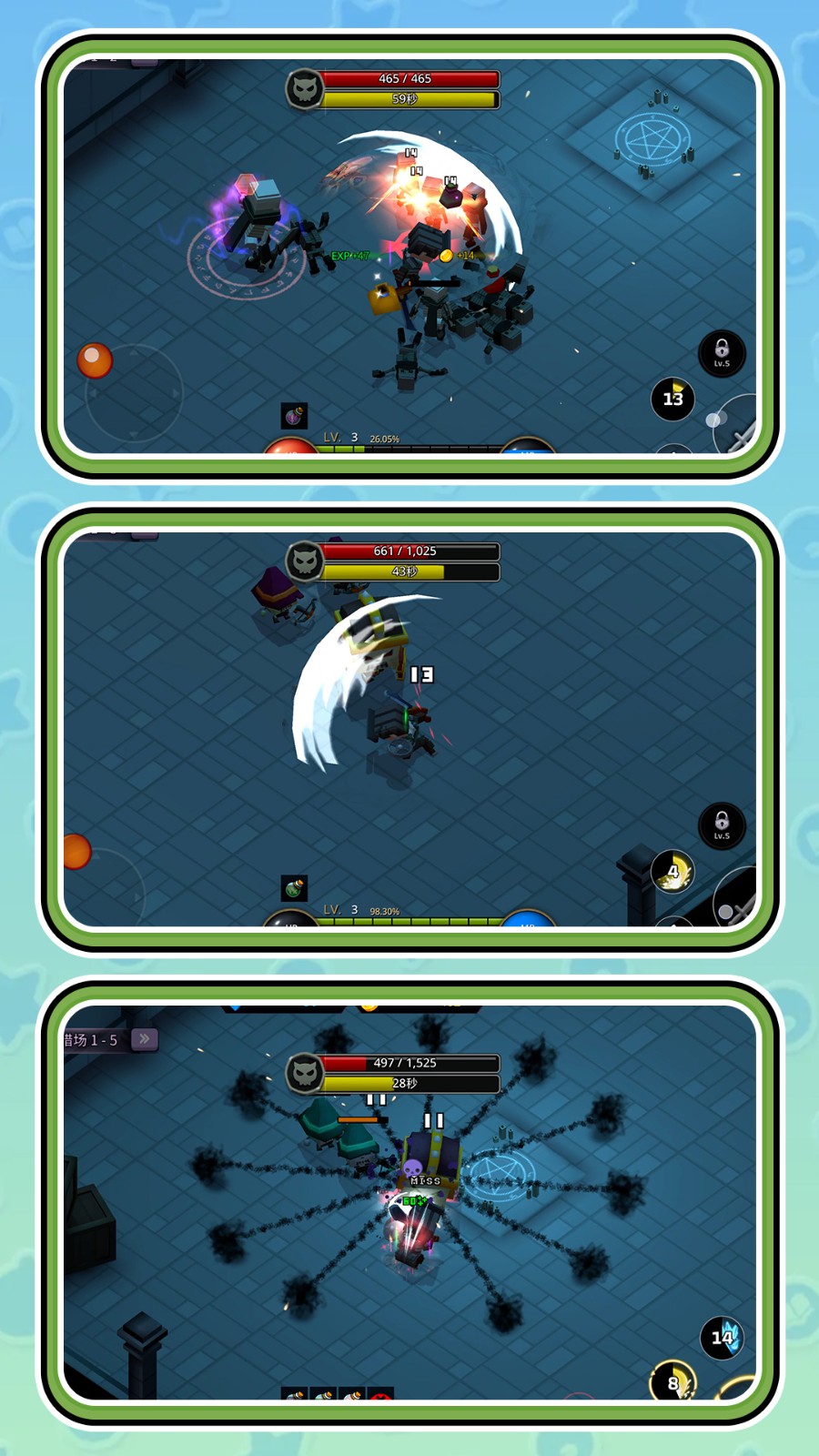 2、在遇到很多的敌人的情况下,我们可以点击技能的按钮,一次性击杀更多的敌人。