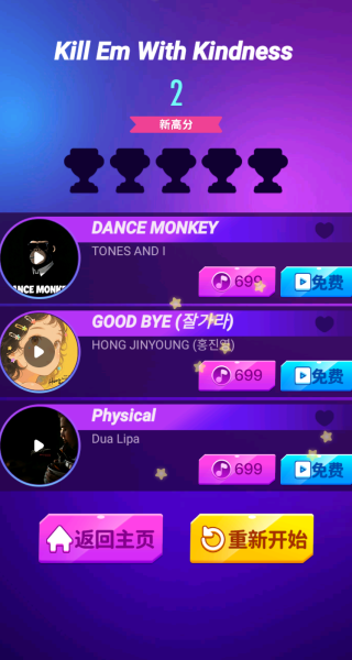 3. 你可以从由易到难的多个曲库中选择歌曲进行挑战,完成挑战后能解锁新的歌曲和游戏模式。