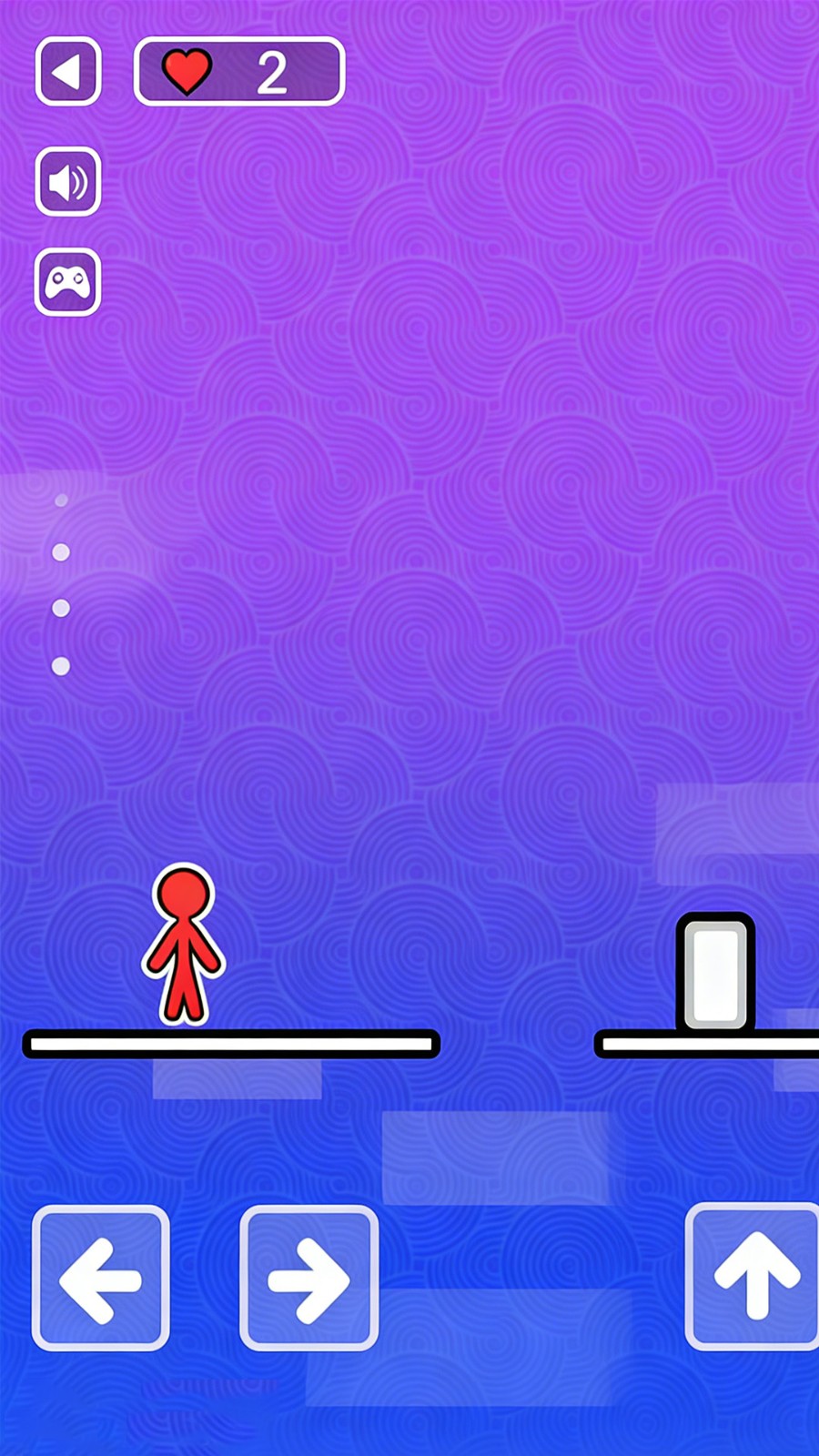 3、控制小人在平台上前进,一不小心平台断裂,小人掉了下去,游戏失败。