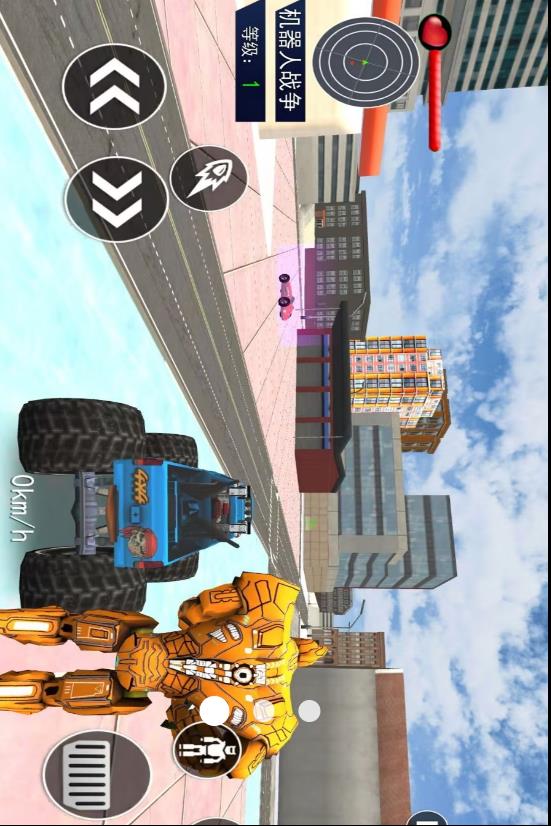 4、利用虚拟摇杆操控着你的机器人与敌人作战,还可以切换成车子形态。