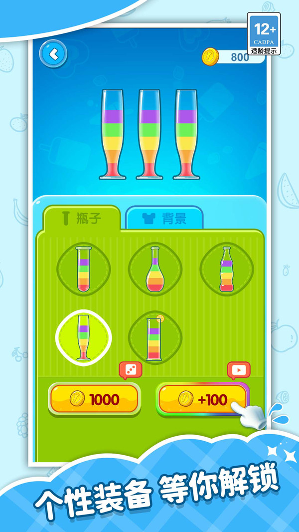 3、成功将同色果汁装满所有瓶子即可顺利的过关,获得系统准备的奖励。