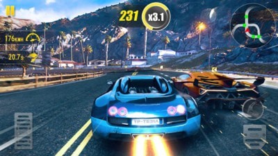 1. 借助虚拟方向盘或重力感应来操控车辆,在进入弯道前进行降档补油操作,通过方向盘与手刹的协同配合实现漂移动作。