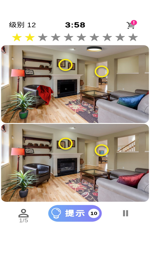 4、当自己实在找不到不一样的地方,可以点击提示按钮助自己找到。