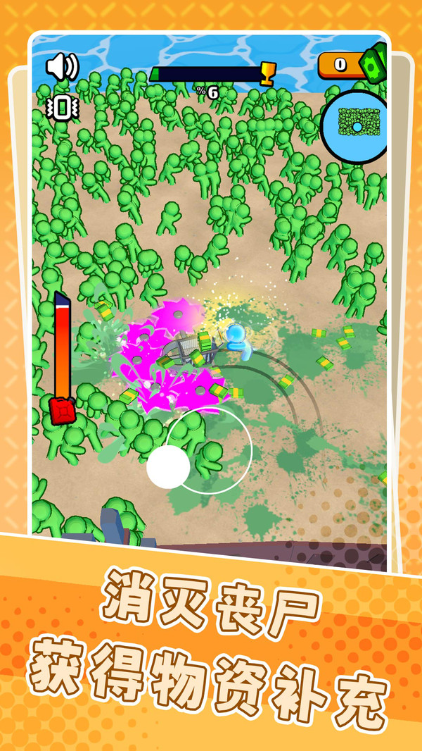 废土斩尸行是一款让人玩起来热血沸腾的休闲战斗游戏,将你带入一个充满趣味与挑战的废土世界。在这个独特的世界中,你将化身为无畏的战车手,操控一辆灵活的小车,在多样的地图中自由穿行。面对汹涌而来的敌人,你只需轻轻划动手指,就可以肆意扫荡战场,尽享如割草般的爽快快感。只有针对它们的弱点进行精准战斗,才能高效地收割赏金,成为废土世界的顶级猎手!