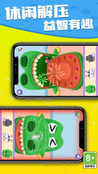 1. 它就像个装满各种解压小玩意的百宝箱,里面有给卡通鳄鱼小心拔牙、用工具抠出完整糖饼等玩法。