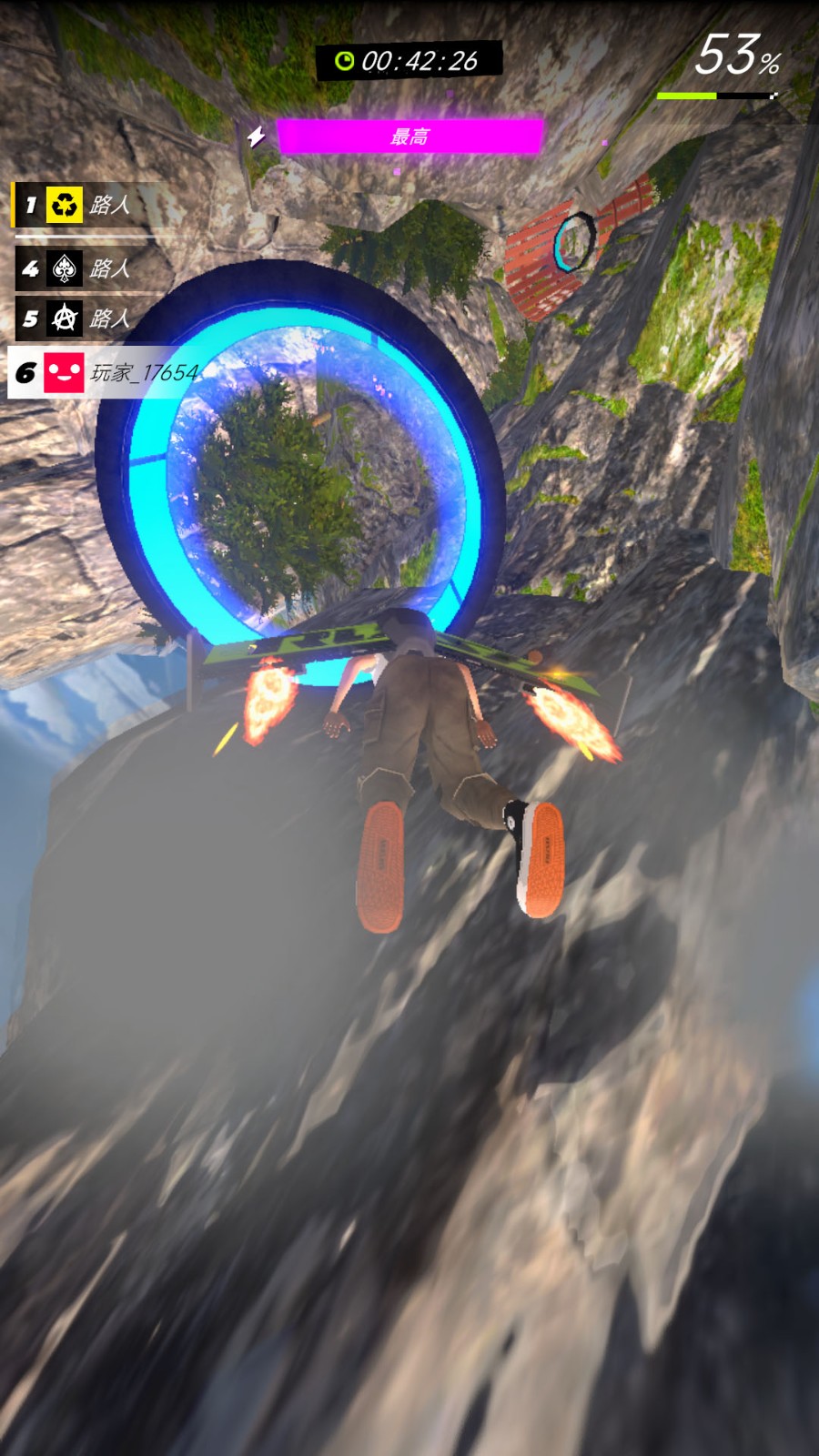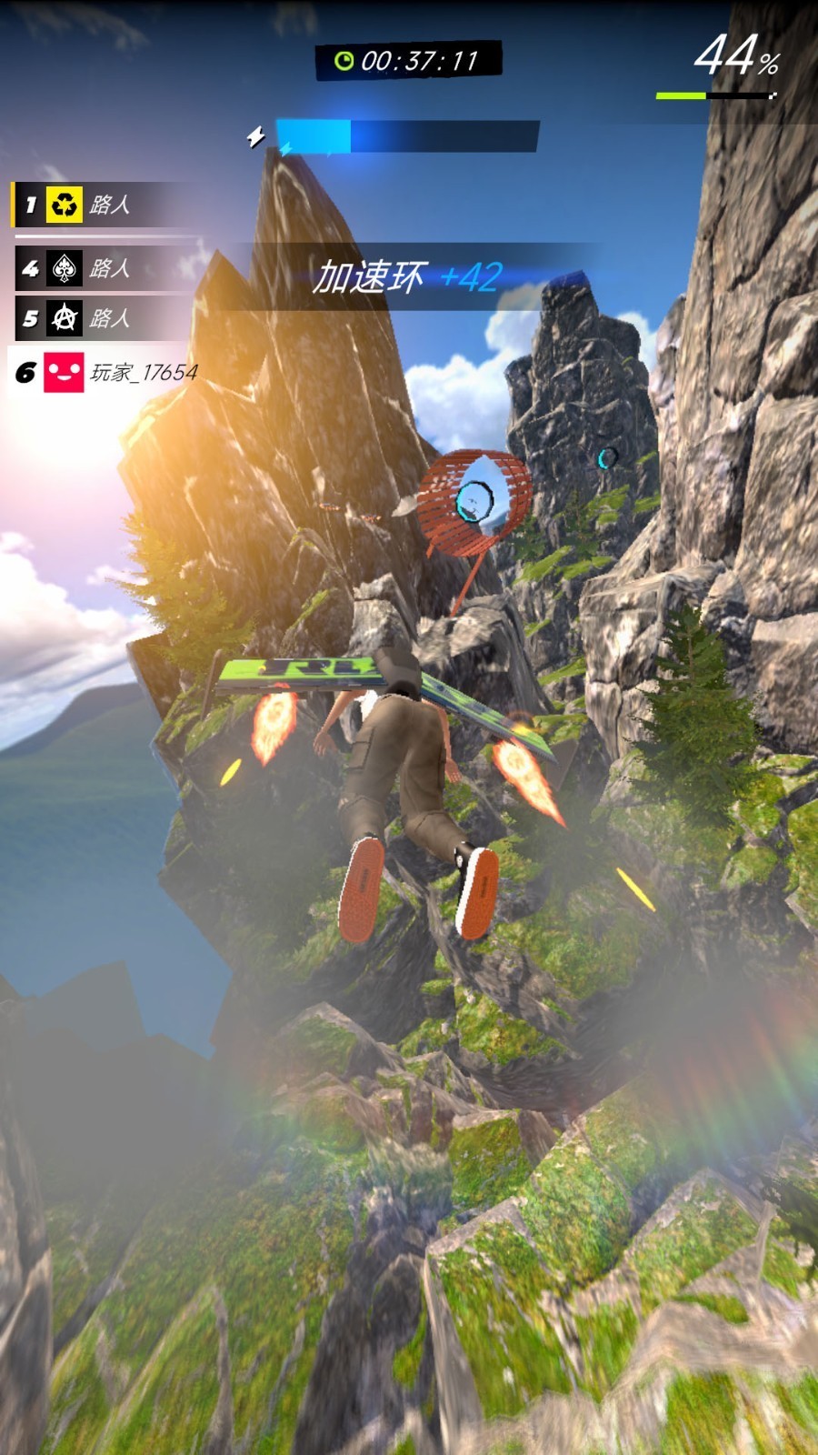 4、打开滑翔翼可以进行飞行,控制角色穿越固定位置,适应高空的飞行模式,快速到达终点。