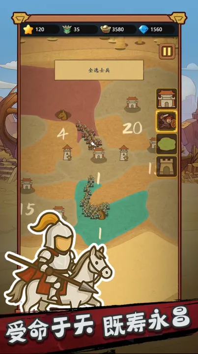 尽管操作简单,成王败寇却蕴含着深刻的策略博弈。每当玩家派出军队时,出发城池的守军数量会大幅减少,陷入相对脆弱的状态。因此,在进攻与防守之间的平衡显得尤为重要。玩家需要仔细判断何时全力进攻,何时稳守防线,以便在战斗中获得优势。