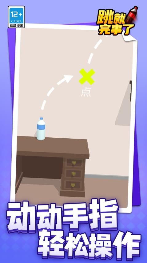 跳就完事了是一款轻松的闯关游戏,玩家只需不断点击屏幕进行跳跃,挑战瓶子闯关之旅。游戏中,你需要巧妙避开各式危险和障碍物。操作简单,只需动动手指,即可轻松上手。Q版卡通的视觉风格让你玩得停不下来,挑战与智慧并重,多个关卡等你来挑战。喜欢的朋友,赶快下载体验吧!