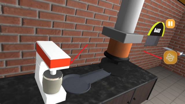 在厨房游戏中烘烤美味的虚拟比萨。最后利用机器切好即可。完美的制作好披萨后即可过关。