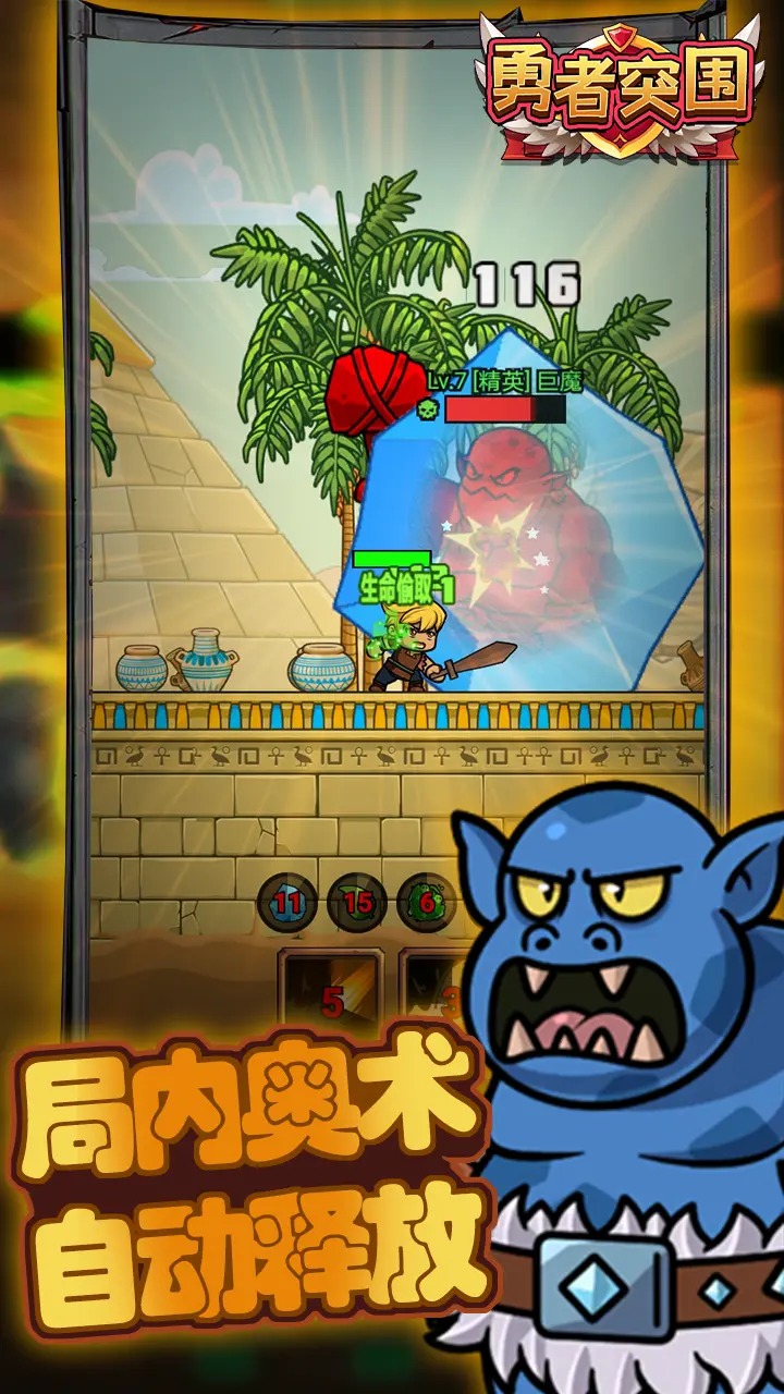 3、卡通立体画风与流畅战斗动画,为玩家带来视觉与操作双重享受。俯视视角设计,提升全局掌控感与策略性。