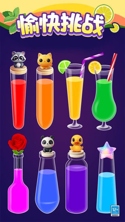 3.玩家的最终目标是将所有分散的彩色液体完美归类,实现每个容器只盛装单一颜色的纯净状态。