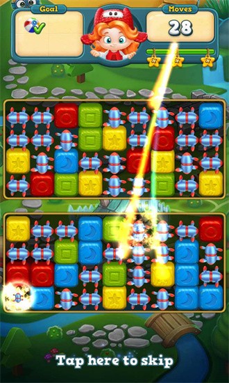 2、玩具爆破匹配两个或多个相同颜色的色块以完成关卡,并收集那里的玩具。但是要小心。