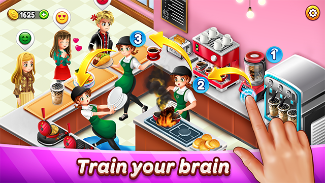 1、实时处理顾客订单,在限定时间内完成食材制作与服务,挑战手速与策略结合的经营乐趣。
