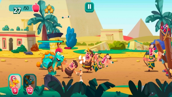 1、仔细观察每个关卡的地形与机关,思考操作恐龙是选择近战还是远程攻击。