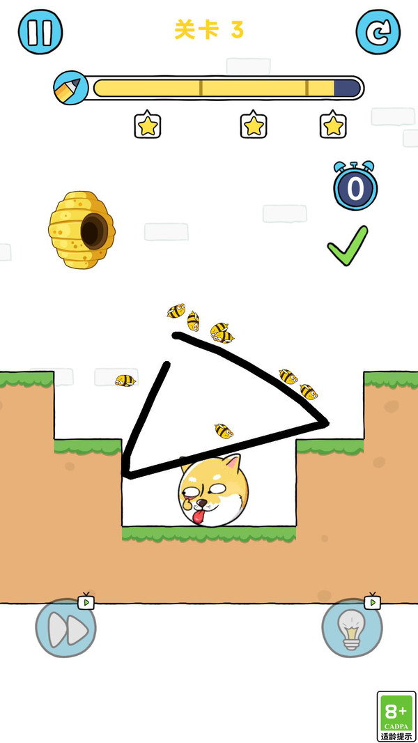 2. 善用墙壁反弹机制,有时画一条斜线改变小动物碰撞角度,比直接阻挡更节省绘画长度。