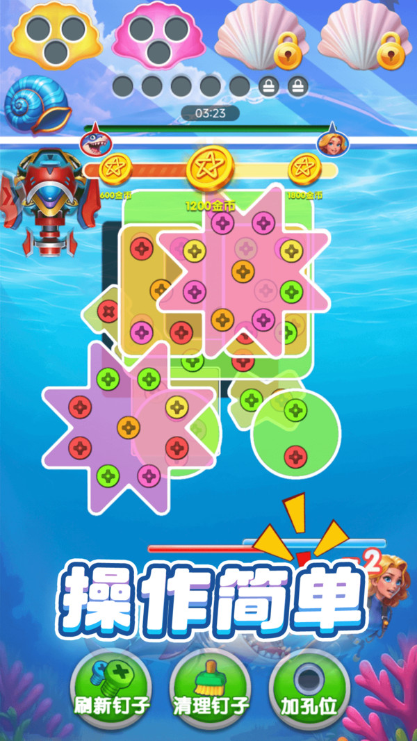 2、丰富的关卡设计,简单易懂的玩法规则,超级适合玩家用来打发无聊时间,游戏的重要任务就是快速的拆除所有的螺丝,解锁精彩的任务,认真的进行观察,每一次都是与众不同的挑战过程。