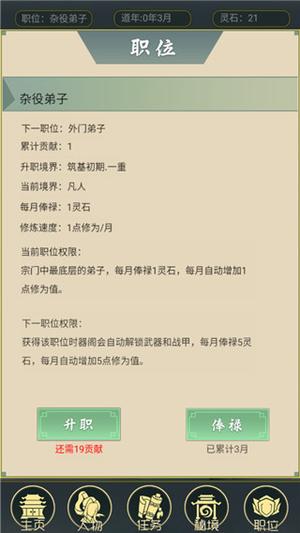 1、初期以杂役弟子身份接取培育灵草、照顾幼兽等基础任务,积累贡献与修为,为晋升外门弟子奠定坚实基础。