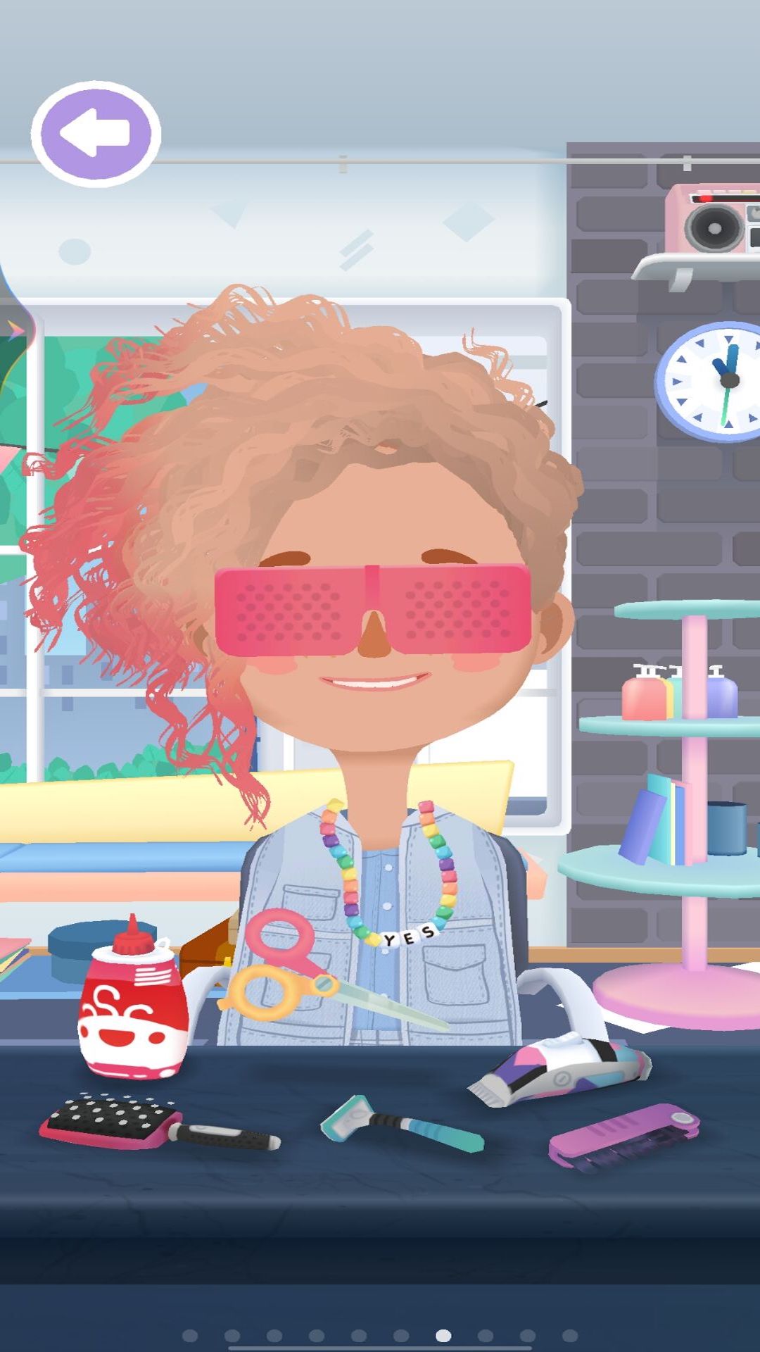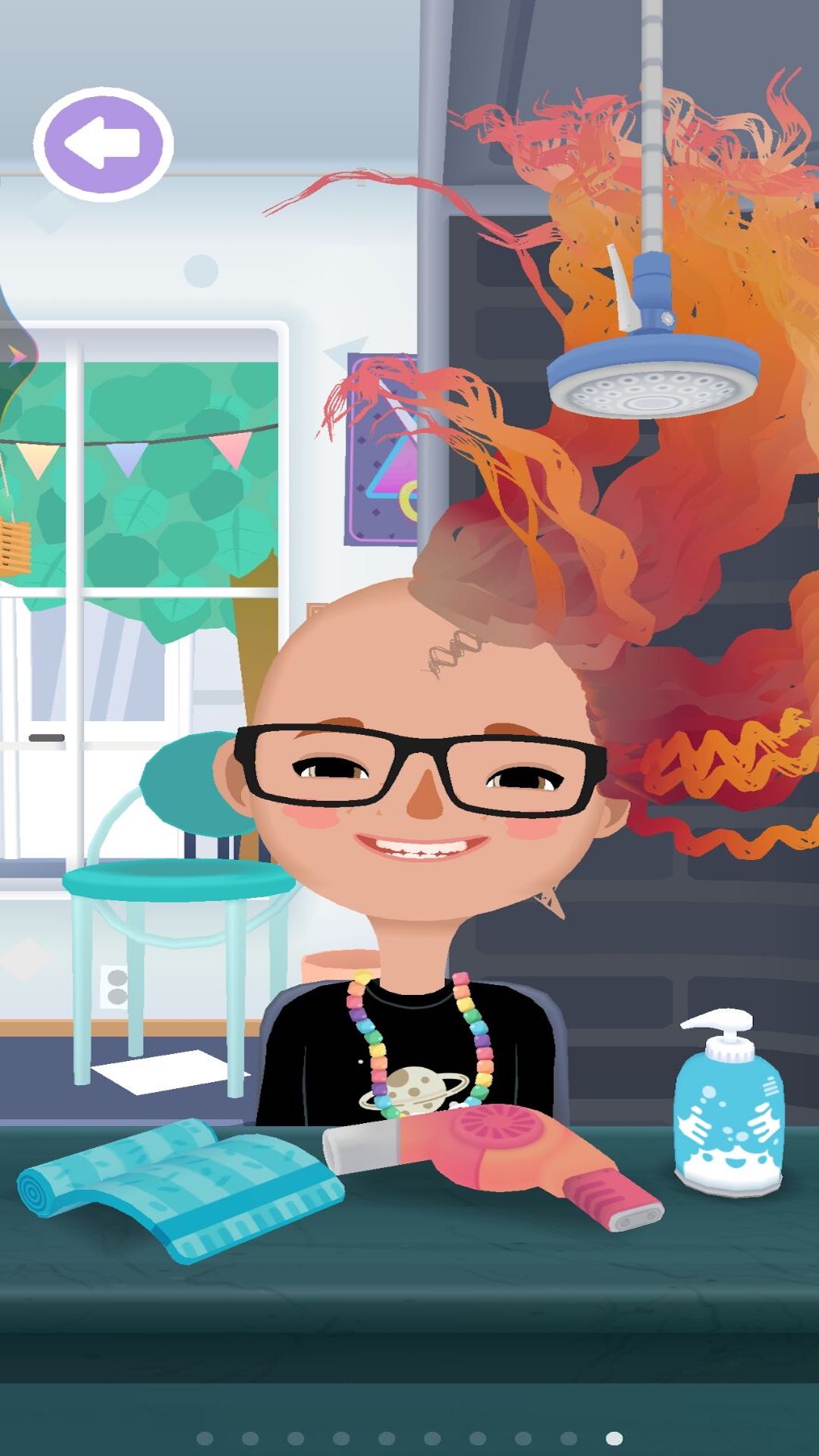 随心所欲地对头发进行修剪造型,头上任何部位都可以重新长出头发! 这个造型站提供了卷发、拉直和定型的加热美发工具;另有色彩缤纷的染料瓶,可以将头发染成斑斓色彩。你的创意会带来怎样独特的造型?