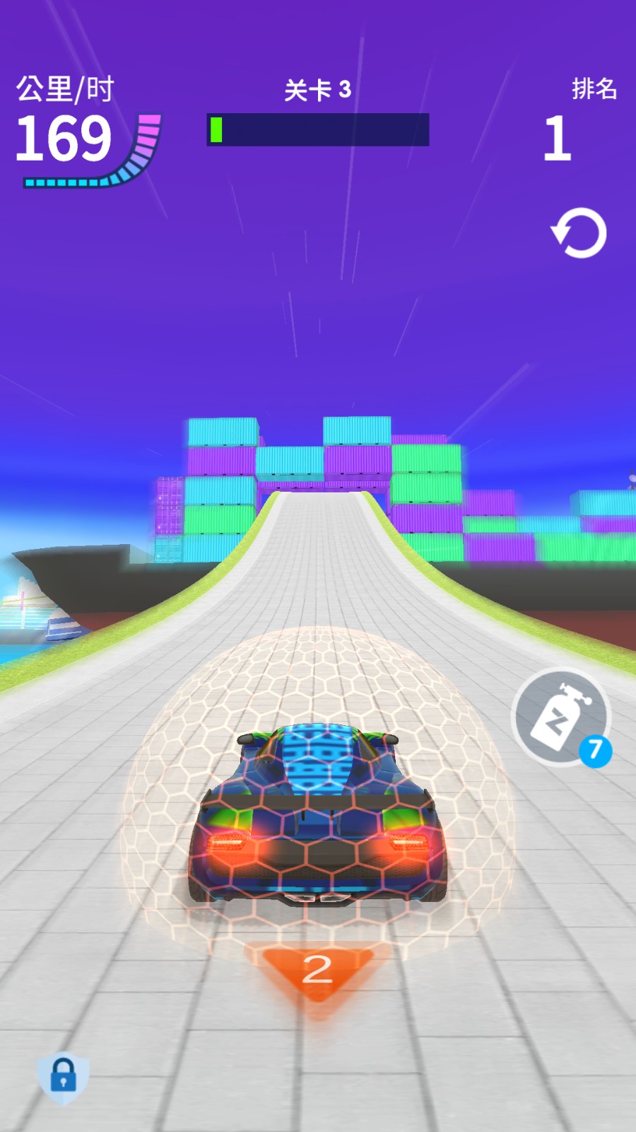 2、赛道中随机分布各类机关陷阱,需及时预判并躲避,同时收集道具箱获取加速、防御等功能的道具。