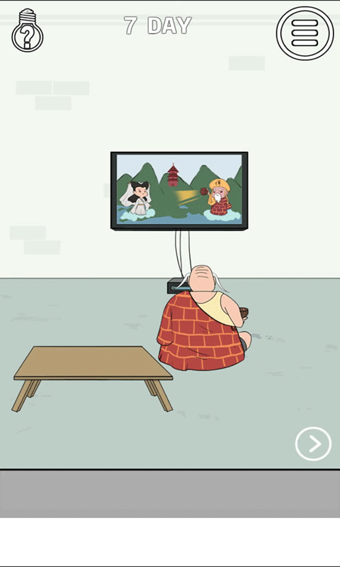 第7关:打碎右边的坛子得到辣条,丢给和尚,得到碗,在第一个坛子上使用,打碎第一个坛子即可。