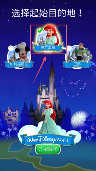 4.开启旅程:在地图界面选择“佛罗里达”或“加利福尼亚”等目的地,点击“开始游戏”按钮,正式开启您的甜蜜之旅。