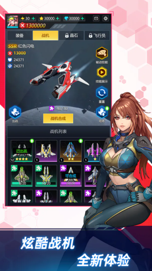 收集数十种不同品质的战机和装备,丰富你的个人高科技武器库;培养战机和装备,不断提升实力,成为最优秀的战斗机飞行员!