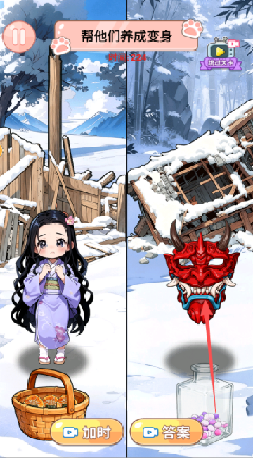 1、根据角色需求投喂对应食物与道具,在限定时间内完成养成互动,让角色从初始形象逐步切换为独特形态。