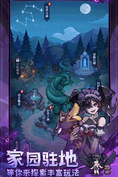 1、暗黑童话题材的创意卡牌角色养成,玩家能够在游戏之中自由进行探索。