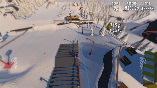 游戏蕴含丰富可玩内容,玩家可选用不同滑雪板展开冒险,同时提供多样场景可供选择。此外,游戏画面表现相当逼真。