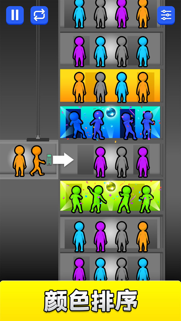 2、展现自己的智商,顺利将不同的小人,放置在不同的楼层当中。