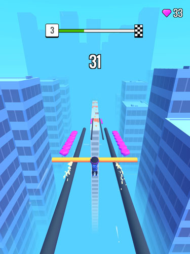 屋顶棍棍侠是一款休闲跑酷游戏。游戏中玩家将操控小人跑酷闯关,一路上要尽可能多多收集散落的道具,来延长自己棍子的长度,这样才能在各种危险中保持角色安全,可以继续前进。当然赛道上还有各种机关陷阱,会影响棍子的长度,所以要规划好安全稳定的前进路线,确保自己能安全稳定的抵达目的地,这样才能解锁后续全新的关卡挑战。