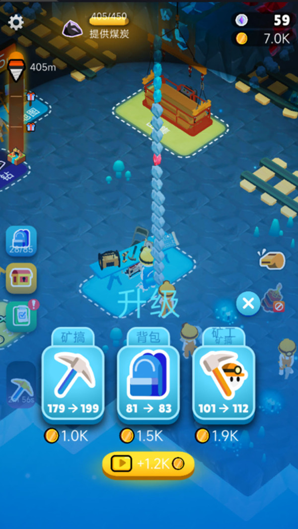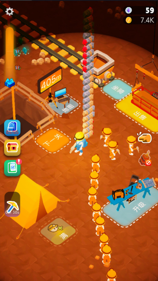 可以在商店里面购买大型挖掘器械,并且还要逐步提升等级,加快工作进度。