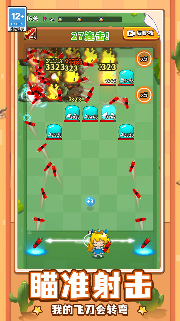 2、在高难度关卡里,要留意敌人的移动规律,提前判断出它们的行动轨迹后再投掷飞刀,这样能避免因盲目出手而造成飞刀浪费或是错失目标。