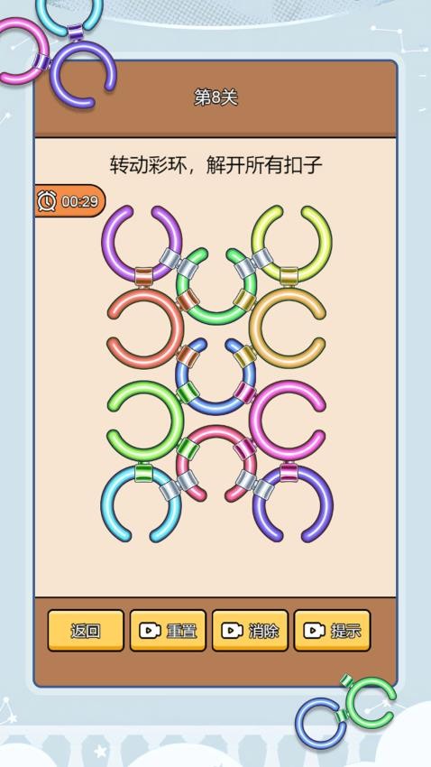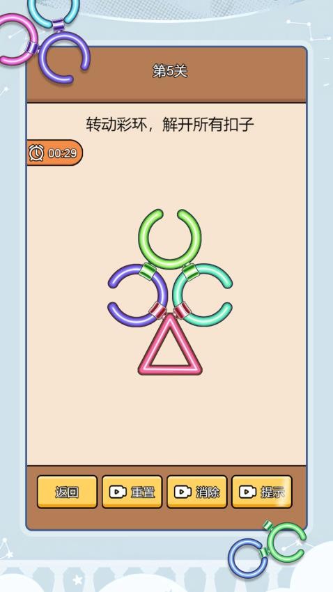 5、圈圈大挑战手游免费版玩法简单,无聊的时候就选择解扣彩环玩法