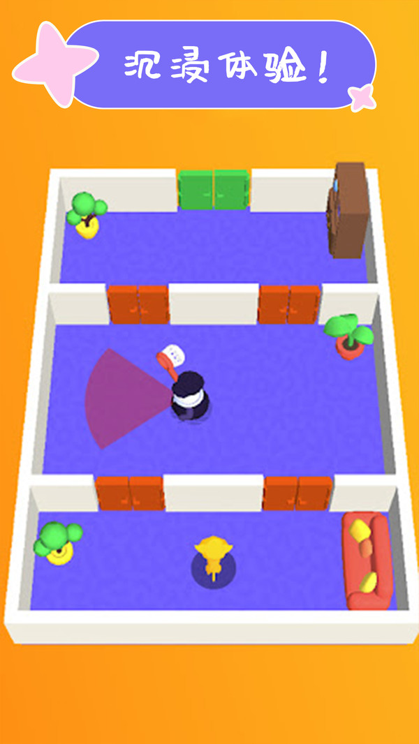 1、玩家操控小猫在关卡中探索,寻找出口。利用场景中的衣柜、箱子等作为藏身处,避开猎人的视线和探测器。